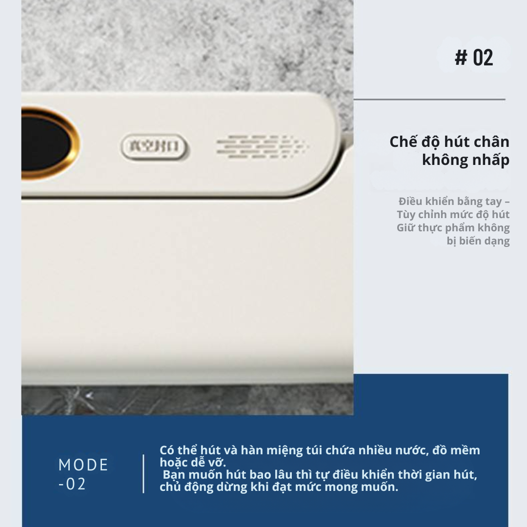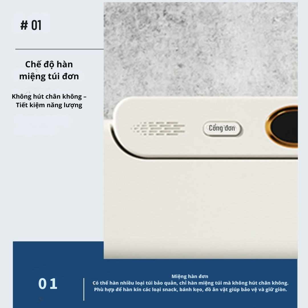 Chức năng: Hút chân không và hàn miệng túi, bảo vệ quá nhiệt