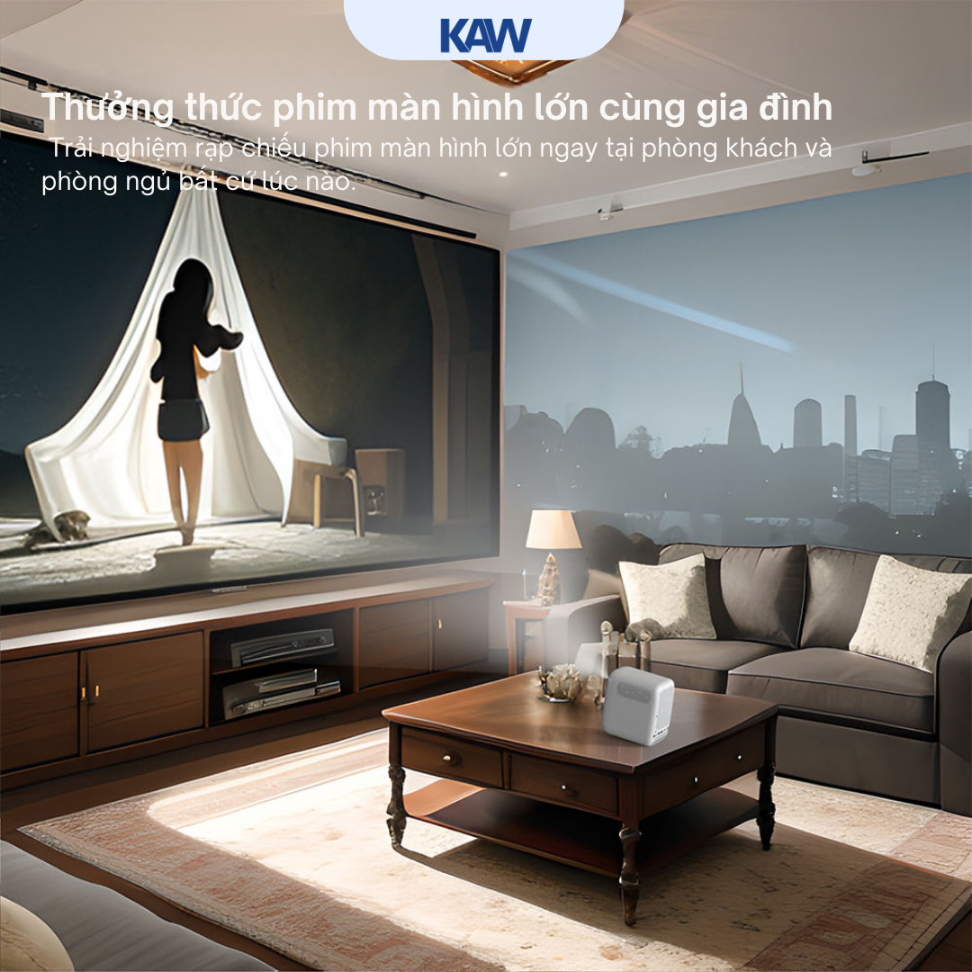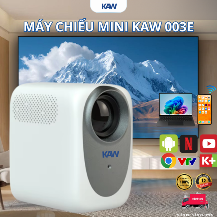 Máy chiếu mini KAW 003E là lựa chọn hoàn hảo cho gia đình, văn phòng và giáo dục. Với độ phân giải Full HD 1080P, độ sáng 7000 lumens và hệ điều hành Android 9.0, KAW 003E mang đến trải nghiệm xem phim, thuyết trình và học tập cực kỳ sống động. Tích hợp Wifi 2.4/5G, Bluetooth 5.0, loa đôi 5W, tự động lấy nét và chỉnh Keystone, giúp bạn dễ dàng sử dụng và trình chiếu nội dung ngay lập tức. Thiết kế gọn nhẹ, dễ di chuyển, hỗ trợ chiếu từ 45 đến 250 inch phù hợp mọi không gian.