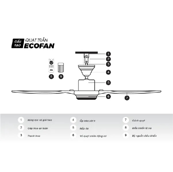 Quạt Trần ECOFAN Classic - Màu Trắng/WH: Giải Pháp Làm Mát Tinh Tế và Hiệu Quả